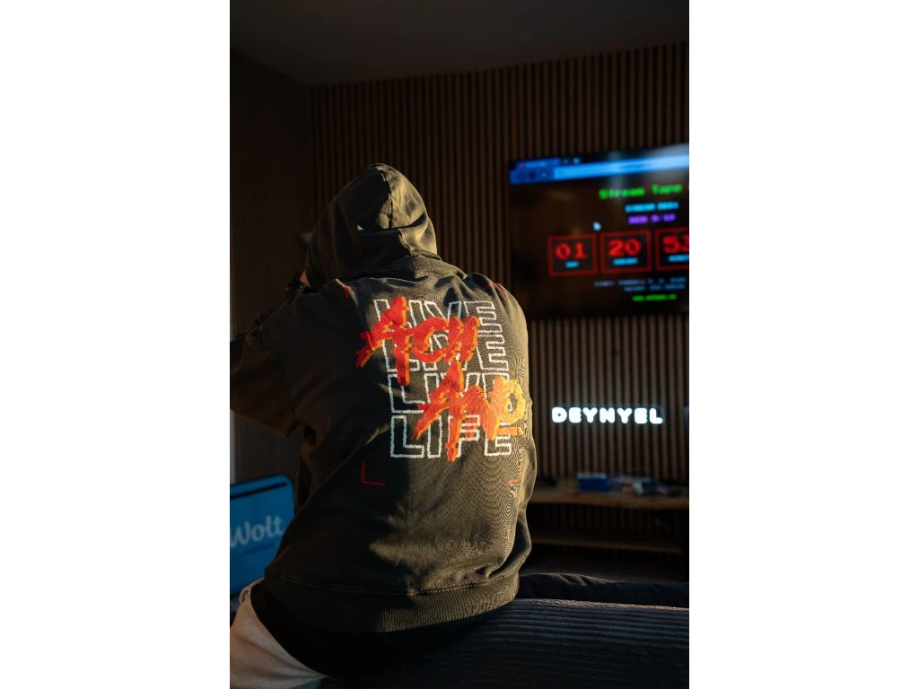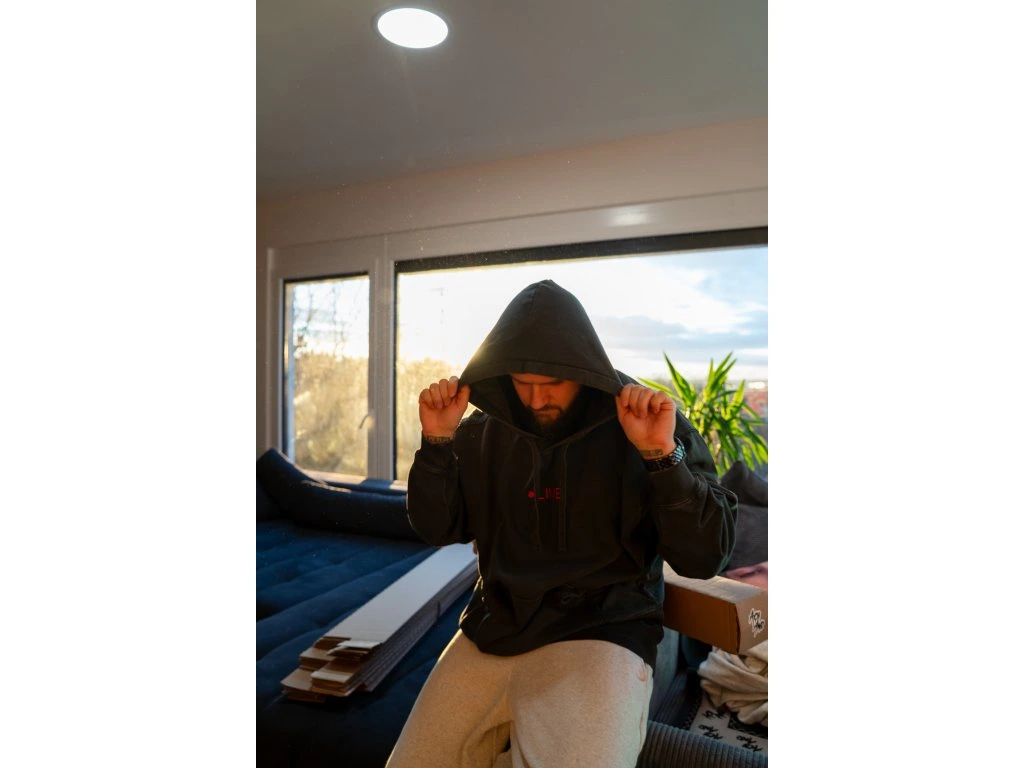 Perte na 30 stupňů a sušte odděleně, barva může pouštět. Nežehlete přes potisk. Perte a žehlete naruby. Jedná se o oděv barvený jako hotový výrobek, každý kus se může vzhledově lišit. Vyšisovaný efekt se bude časem zvýrazňovat. Barva se může třením přenášet na světlé materiály.